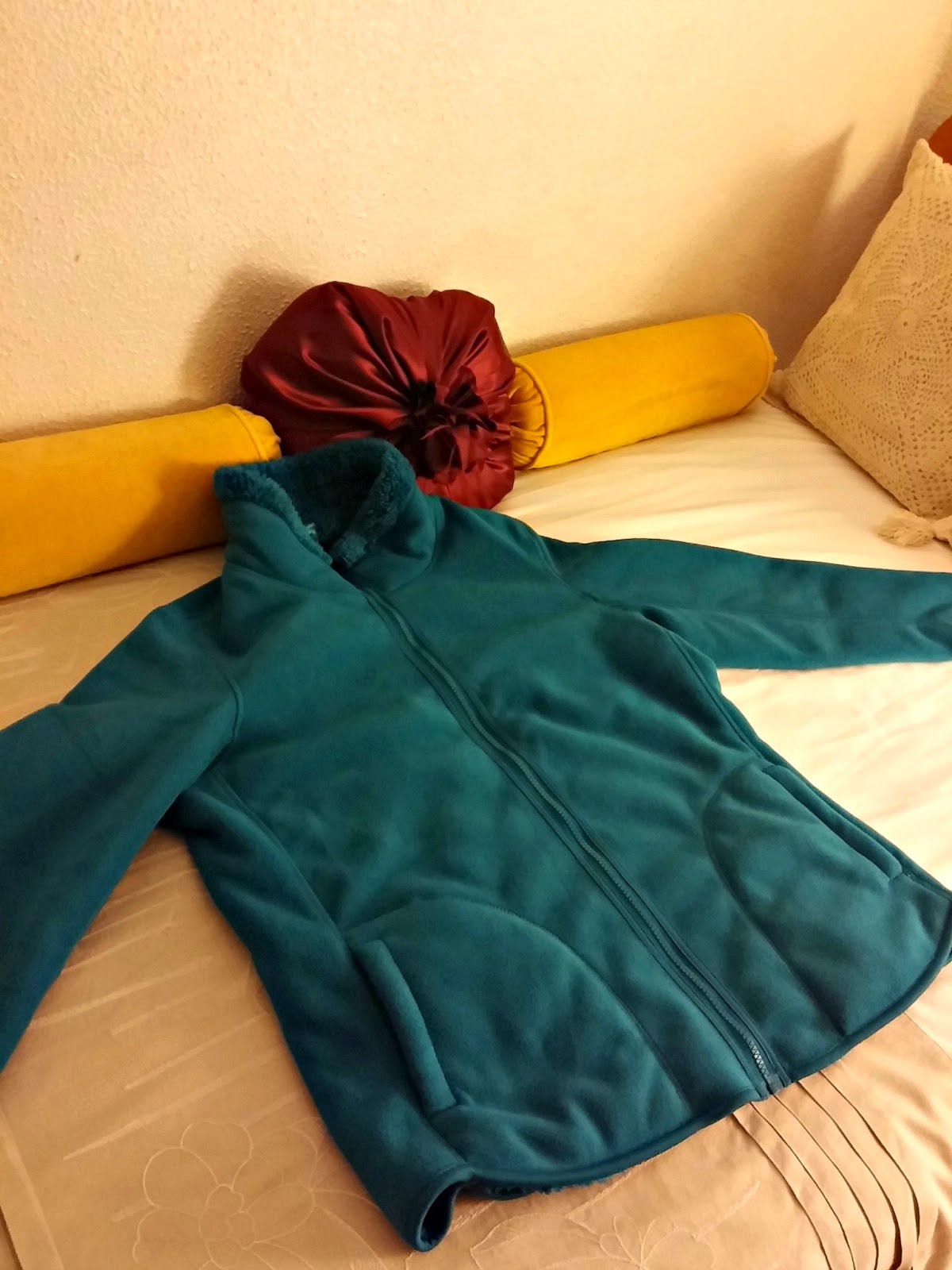 Today is my birthday as perhaps those of you who are on facebook are aware. My photo shows a lovely warm jacket from my friend Cielo. I don't really need another jacket as jackets and coats are like others' shoe addiction. In other words, I have too many. I love the colour though, and it's reversible. Our weather has warmed up some so that it's a bit too warm for the jacket at the moment.